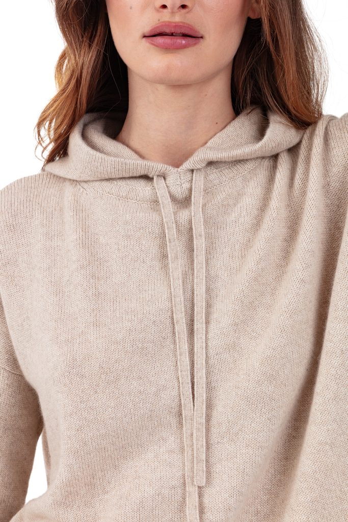 Blending comfort and elegance, this women’s cashmere hoodie can be worn with jeans for a relaxed style or paired with tailored trousers or a skirt for a more refined urban outfit. A modern and versatile piece, perfect for moving through the season in style.