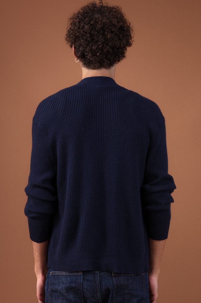 This ribbed cashmere cardigan is perfect for completing a retro-inspired look while remaining elegant, worn over a shirt or a simple T-shirt.